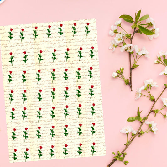 Rose and Love Letter Ceramic Enamel Glass Fusible Decals, Full Sheet Image Transfer Waterslide Decal, 1016